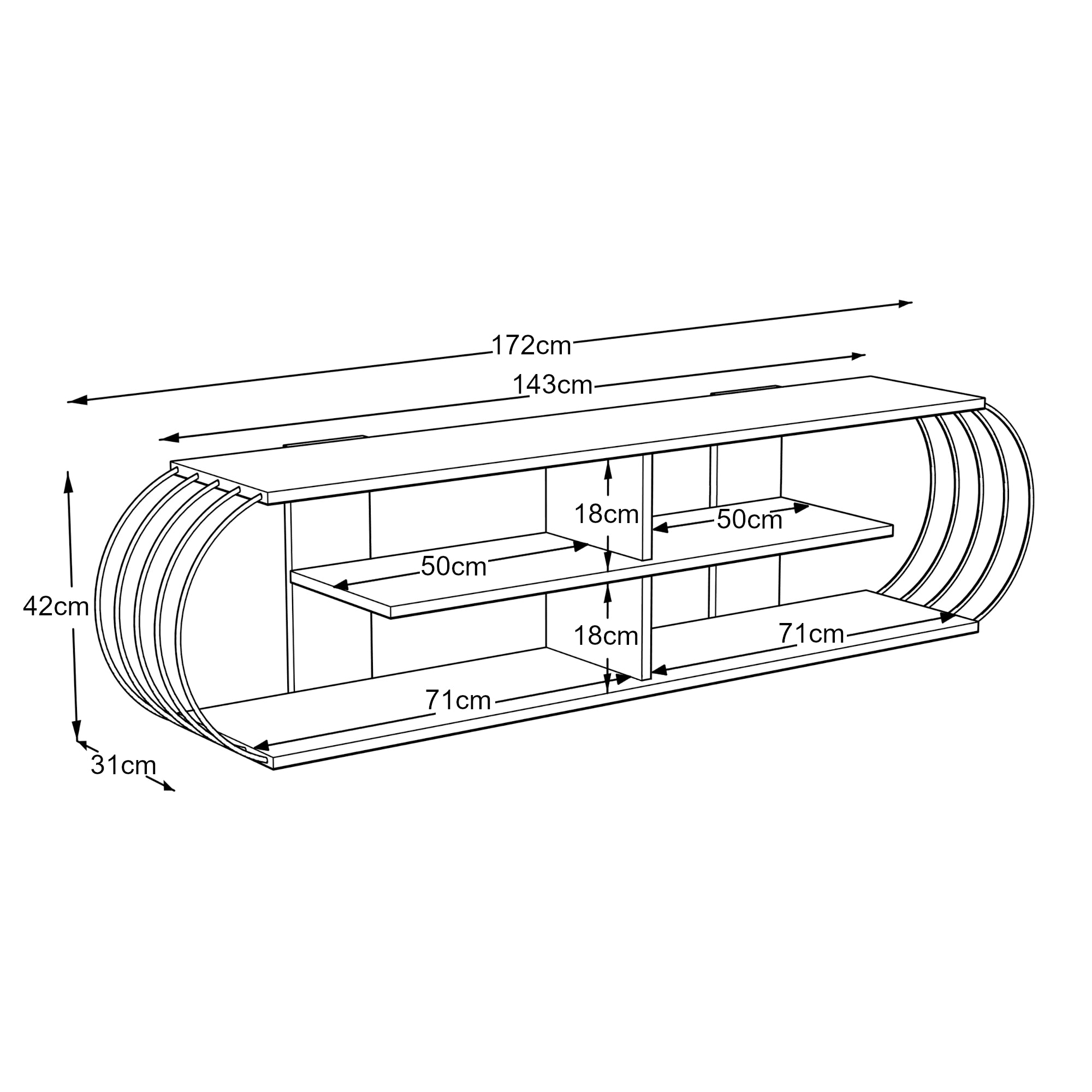 Cette table TV décorative et pratique est parfaite pour chaque foyer. Les étagères supplémentaires offrent un espace de rangement idéal pour, par exemple, un décodeur, des consoles de jeux ou un lecteur DVD.