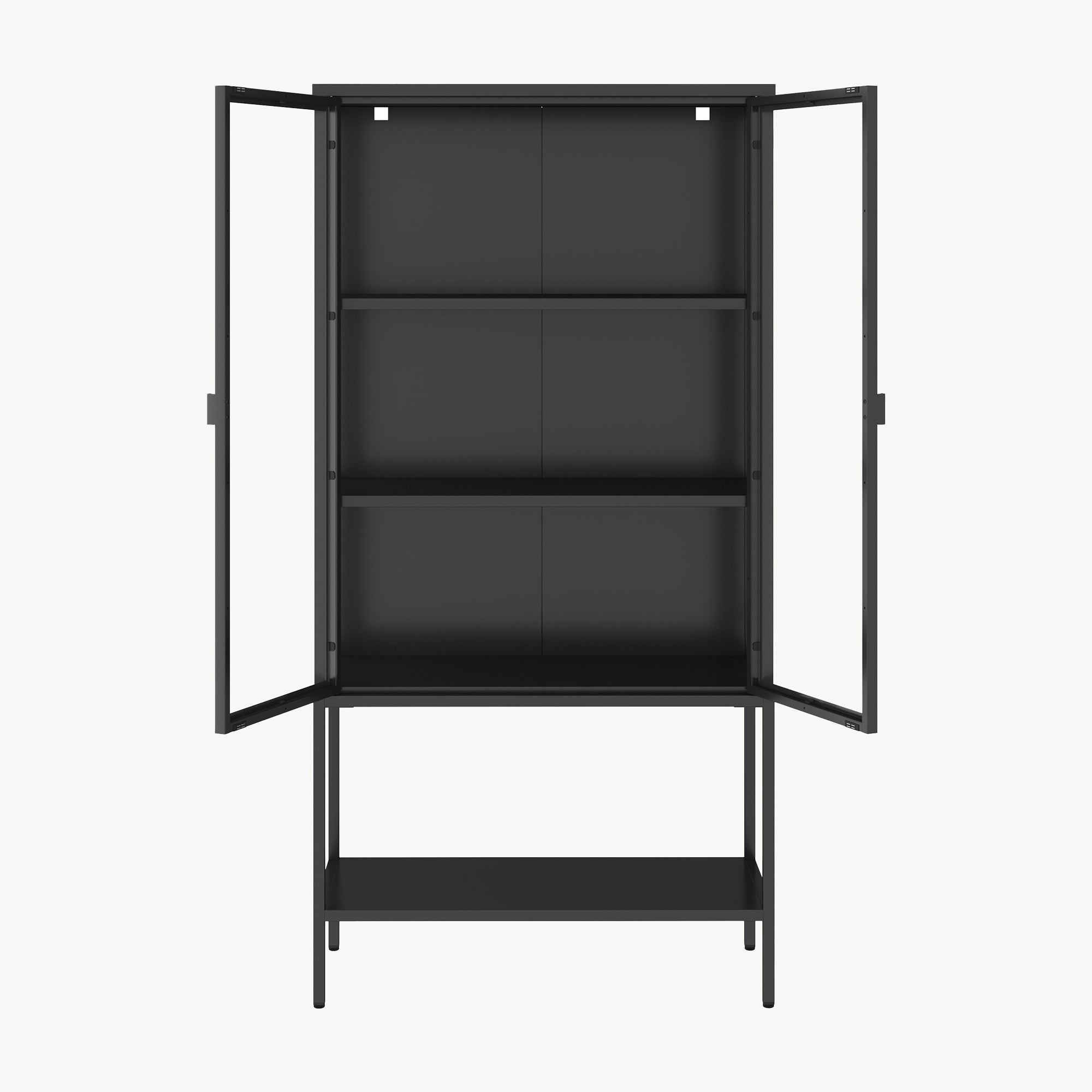 La vitrine moderne allie design élégant et espace de rangement pratique, constituant le complément idéal pour le salon, le bureau ou la salle à manger. Avec deux portes vitrées et trois étagères spacieuses à l’intérieur, elle met en valeur vos pièces préférées de manière décorative.